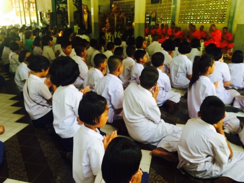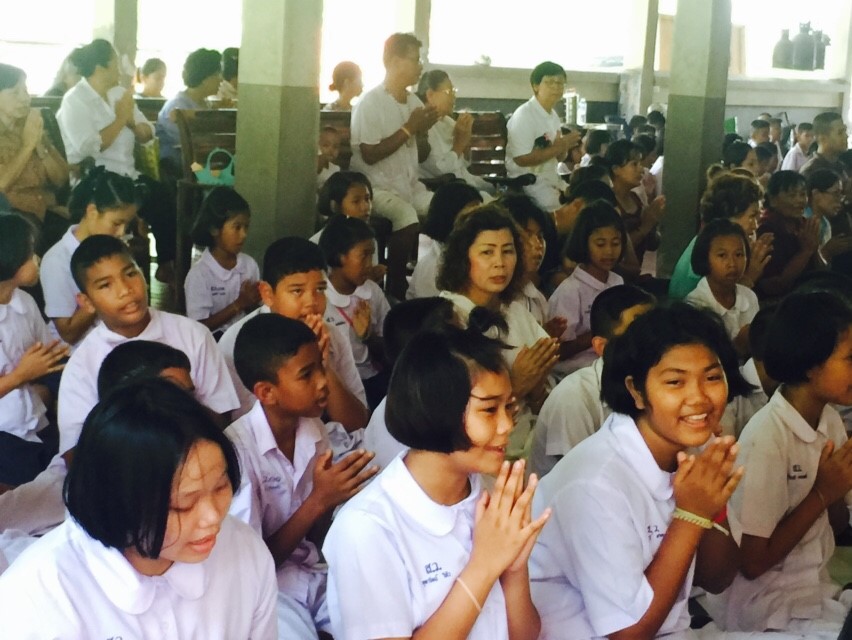 นำนักเรียน และคณะครูเข้าร่วมกิจกรรม ใส่ชุดขาว พาน้องเข้าวัด กินมังสวิรัติ ขจัดปาณา ณ วัดสมหวังวนาราม เนื่องในวันพระ 4 กรกฎาคม 2559