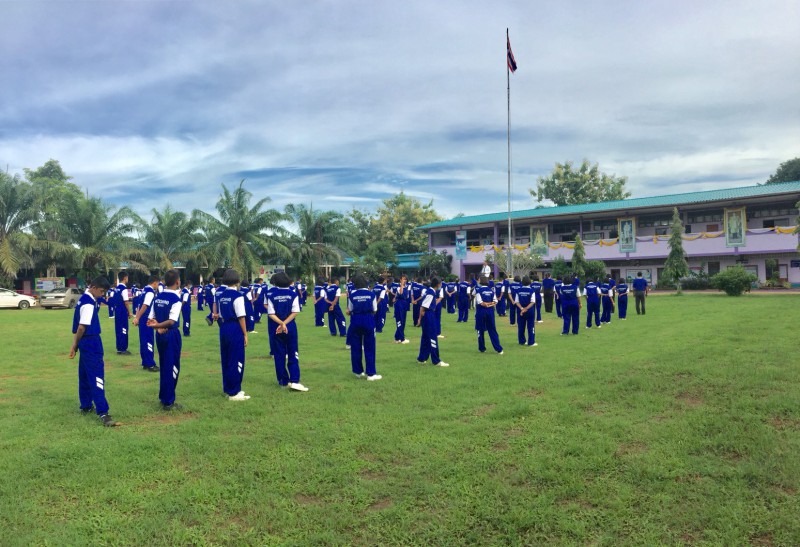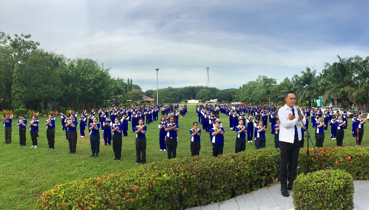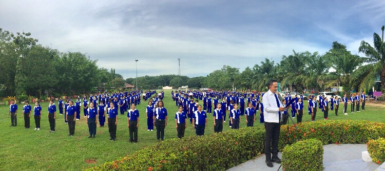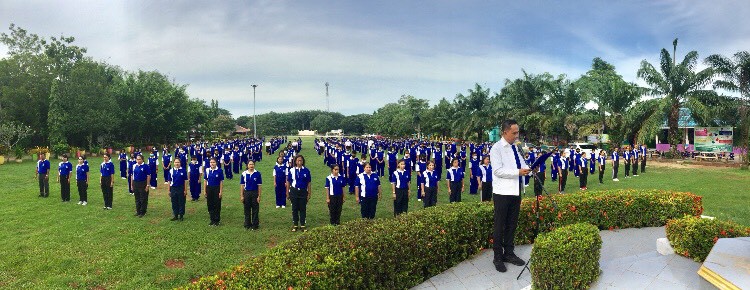 นายสาธิต สร้างสกุล ผู้อำนวยการโรงเรียนวัดสมหวัง นำข้าราชการครู บุคลากรทางการศึกษาและนักเรียน เข้าแถวเคารพธงชาติ สวดมนต์ไหว้พระ กล่าวคำปฏิญญาโรงเรียนสุจริต