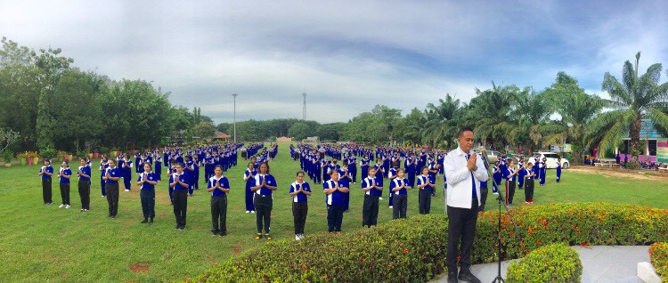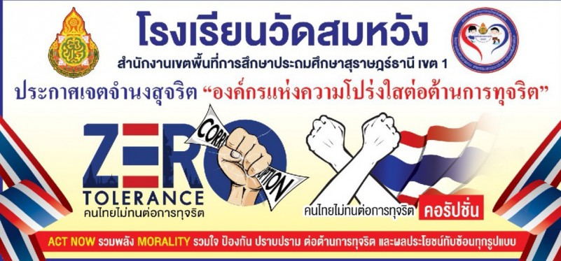นายสาธิต สร้างสกุล ผู้อำนวยการโรงเรียนวัดสมหวัง นำข้าราชการครู บุคลากรทางการศึกษาและนักเรียน เข้าแถวเคารพธงชาติ สวดมนต์ไหว้พระ กล่าวคำปฏิญญาโรงเรียนสุจริต