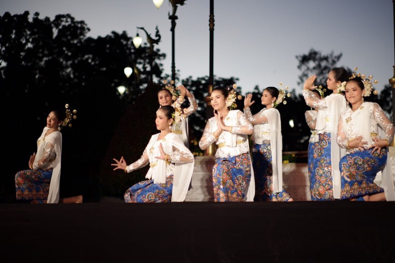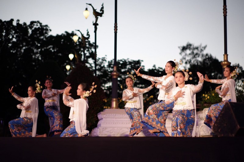 การแสดงชุด ระบำอารยะนารีศรีสุราษฎร์ ในพิธีบวงสรวงศาลหลักเมือง และพิธีสมโภชผ้าห่มพระธาตุศรีสุราษฎร์