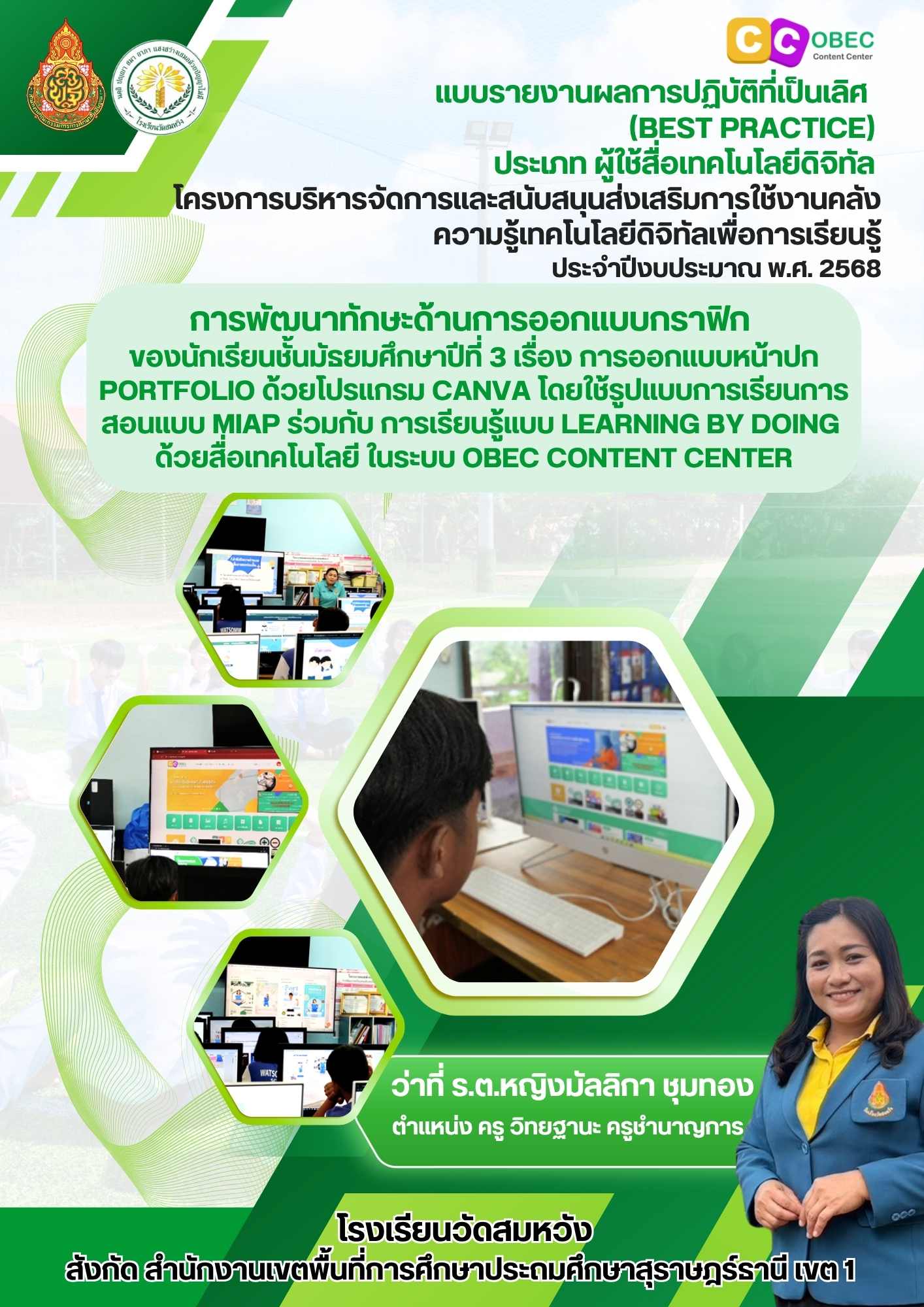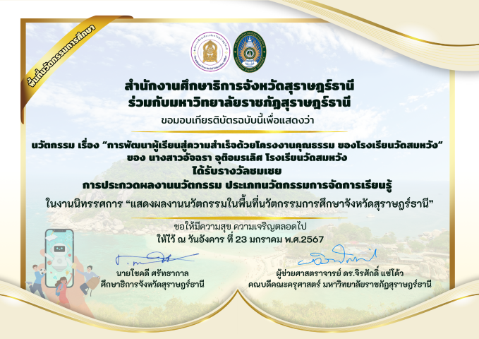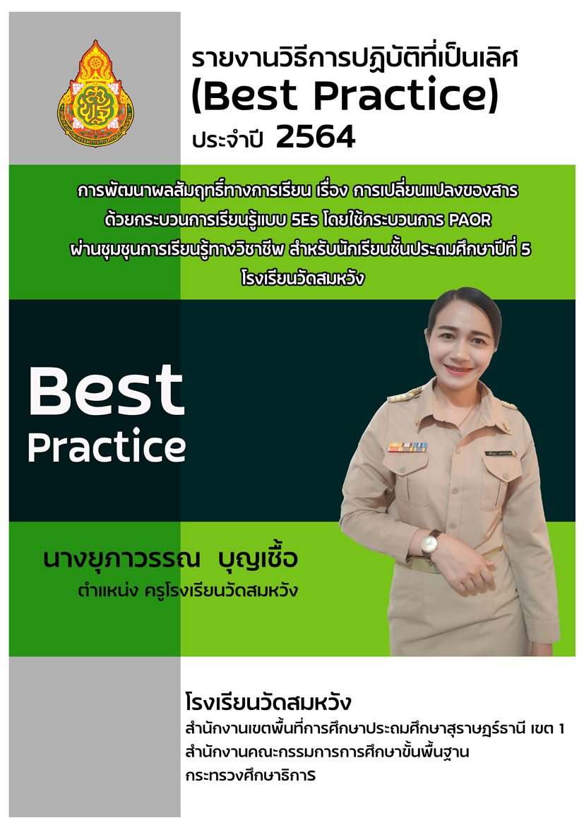 วิจัยเรื่อง รายงานผลการใช้ชุดฝึกทักษะภาษาอังกฤษเพื่อการสื่อสาร เรื่อง Wonderful Tense โดยใช้เทคนิคการสอนแบบ 2W3P รายวิชาภาษาอังกฤษ (อ23102) กลุ่มสาระการเรียนรู้ภาษาต่างประเทศ ชั้นมัธยมศึกษาปีที่ 3 โรงเรียนวัดสมหวัง |